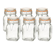 Airtight Clear Glass Jars with Stainless Steel Bail & Trigger Latch (9.6oz) – Leak-Proof Square Food Storage (Set of 6)