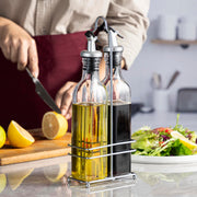 - Oil and Vinegar Dispenser set: 3 Piece combo set, the volume of each bottle is 8.8oz, 10 inches tall.
