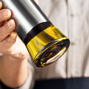 Enjoy precise, mess-free pouring with this oil and vinegar dispenser set, designed for everyday cooking, salads, and table service. Crafted with a clear glass bottle and stainless steel shells and drip-free pour spout, each dispenser combines functionality with a clean, modern look that fits seamlessly into any kitchen.