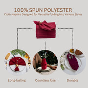 • Premium Quality Material: Crafted from spun polyester, our cloth napkins are high-quality, soft, absorbent, and quick-drying. Each napkin is carefully cut and sewn with a generous hem, ensuring long-lasting durability.