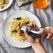 Brighten up any table setting with our Gala Housewares salt and pepper grinders. This durable grinder features a glass body giving it a look compatible with any restaurant decor and making it a great addition to any tabletop! They are refilling easy and can make your tabletop organized. These shakers can be used for more than salt and pepper. Try them with garlic salt, cinnamon, and other finely ground spices to give your tables a glowing array of spices! Each grinder is made of high quality thick glass and comes with a stainless steel lid. You can quickly identify the grinder's contents, so you can always getting what you want instead of wasting your stock.