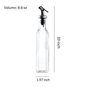 - The oil and vinegar glass bottles is made of thick clear glass with drop free pour spouts with sealed cap and fit the bottle well, easy controlled pouring and perfectly keep bugs and dust out.