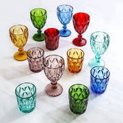 The gorgeous color and vintage design of the glass adds a touch of ambiance and warmth so fill this beauty up with wine as this glass goblet will be the perfect decoration in your home, party and garden. You can also style your wedding reception tabletops by mixing different pressed patterns, styles, and heights for water and wine. Looks awesome on your tabletops and makes them a stand out!